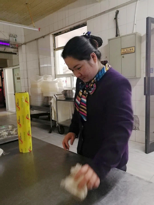 周引萍原籍甘肃,从春节起一直没有返乡休假,在这段紧张而忙碌的时间里,宾馆洗碗工因疫情未归,周引萍就主动担负起洗碗工作。每日的洗碗消毒,看似没有平时的工作量大,但因为要求高、标准高,要经过严格的消毒程序,几天下来,她的双手出现了脱皮现象,而且长时间的弯腰,让她的腰酸痛不已,要许久才能恢复体力。就是这样,她从未想过退却,从未提过苦和累。