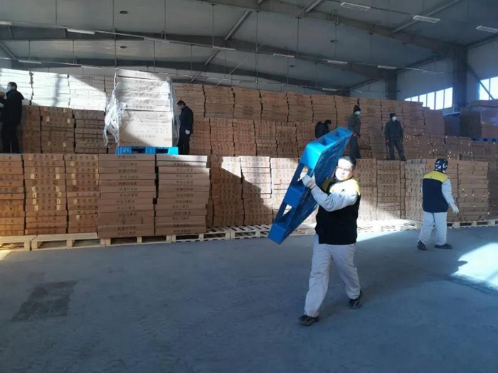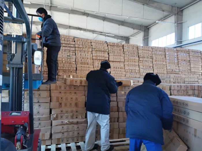 1月份,北京遭遇上世纪六十年代以来的极寒天气,空旷的库房温度几乎与室外相同,职工们的手脚被冻僵,但大家有的蹬上两双羊绒袜子,有的在身上、脚底贴上暖贴继续奋战在现场。有时午饭时间刚到,正好货车也到了,此时没有人会去吃饭,大家不约而同地奔向货车,在卸完这趟车后才端起已经发凉的饭盒……